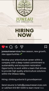 Juneau Tree Services Ltd. is Hiring a Climbing Arborist
